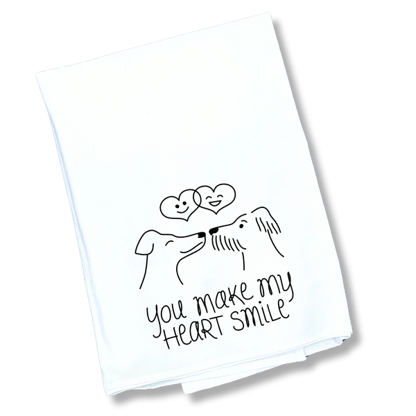 Add some charm and humor to your kitchen with our You Make My Heart Smile Tea Towel. This cotton tea towel is not only functional for drying dishes, but also features a playful design that will bring a smile to your face every time you use it. Perfect for everyday use or as a gift for your loved ones.